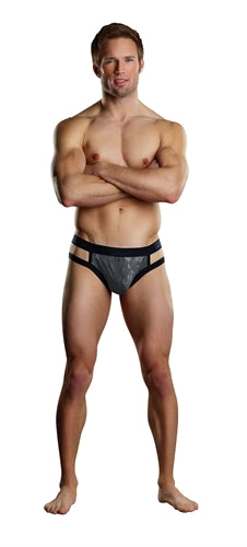 Crinckle disc jock features a circular pattern in silver on a black background with a plush tone-on-tone elastic band.