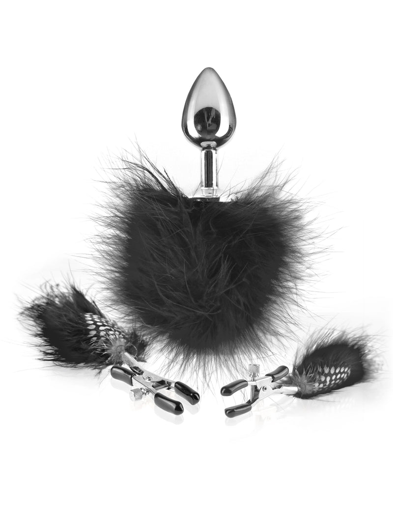 Fetish Fantasy Series Feather Nipple Clamps & Butt Plug - Black