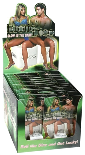Glow In The Dark Dice - Display of 24 Its easy to score when you have these glow-in-the-dark gems in your pocket One dice tells you what to do the other which body part.