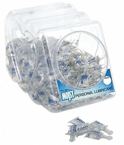 Moist Personal Lubricant Pillow Paks Bowl of 288. Water based Moist lubricant comes closest to feeling like your bodies natural producing lubricant that is crystal clear condom safe non staining and fragrance free providing long lasting slipperiness.