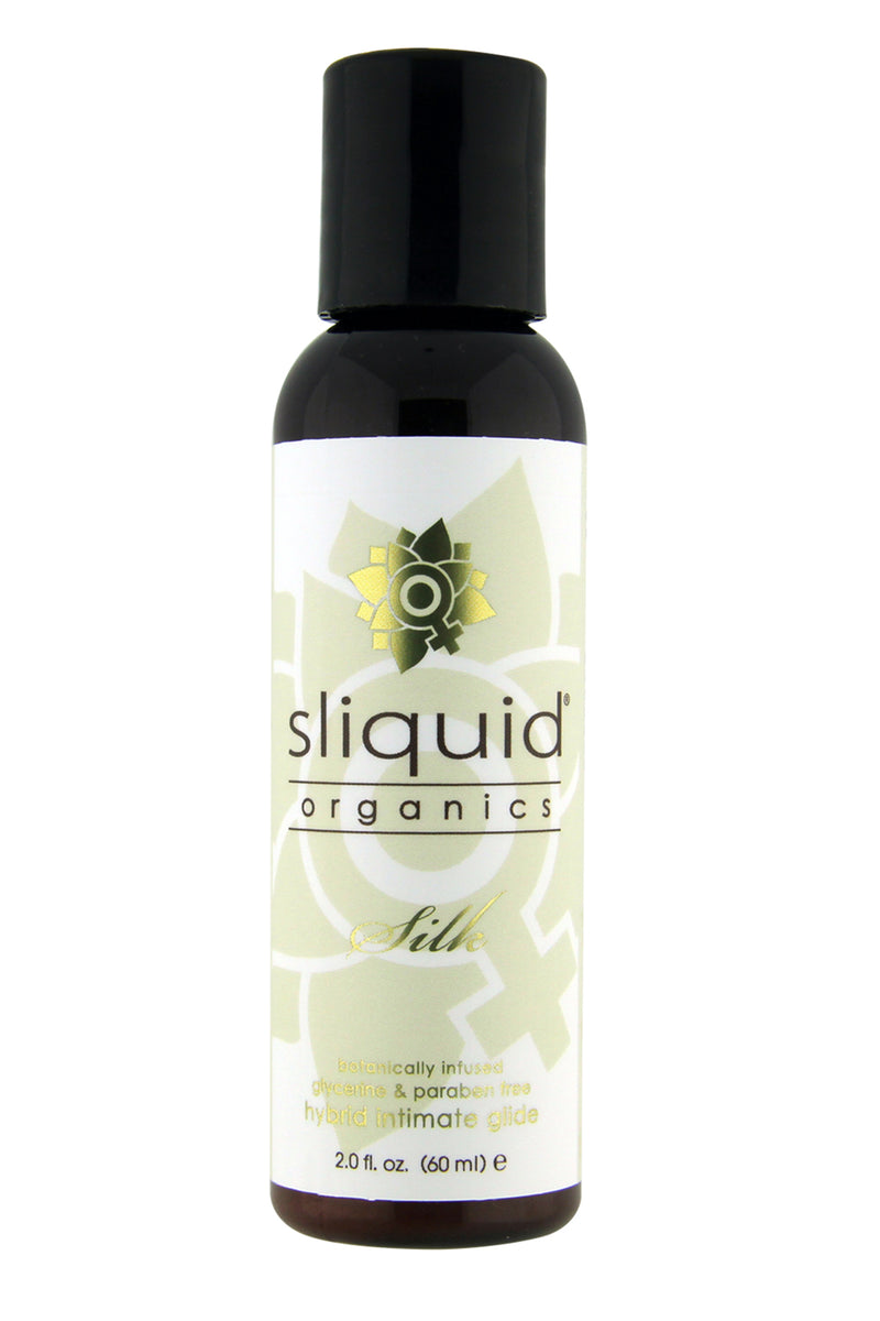 Sliquid Organics Silk is an aloe & silicone based hybrid personal lubricant, infused with organic botanical extracts. This hybrid blend creates a natural silky and creamy texture. Infused with emollient esters, this natural lubricant resembles a fragrance free, soothing skin lotion.
