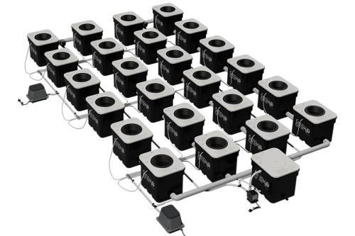 The Under Current® Systems are ideal for large-scale commercial growers. With the patented Sub-Current Culture® circulation method, growers can now improve operational efficiencies and overall yields. Sub-Current Culture® (SCC) technology utilizes negative water pressure to recirculate highly oxygenated nutrient solution through the plant’s root zone. This continuous fluid motion supercharges the nutrients with dissolved oxygen, creating hyper-aerobic conditions perfect for explosive plant growth. High levels of aeration and constant circulation optimize plants nutrient uptake capacity. This action conserves nutrients, water and necessitates less frequent nutrient change-outs. 30 inch plant centers with recommended growth time of 3-5 weeks. The Under Current® XL13 & XXL13 Systems Includes: 30 in center in the 13 gallon Blackout Series growth modules, 3 in manifolds, 3 in UC Spin Tight Bulkheads, 8 in heavy duty lids with port hole, heavy duty 8 in net pots, Danner Mag-Drive Return Pump, Premium Linear Air Pump(s), 9 in air diffuser disc, Aqua-Pore Air Diffusers, air distribution manifold, air hose, in-line filter(s), adjustable float valve with reservoir adapter kit, drain valve, dhiller adapter, garden hose drain adapter, Cultured Solutions VEG A/B. 16 site has a 15 ft x 16 ft grow area, 24 site has a15 ft x 22 ft grow area and 32 site has a 15 ft x 28 ft grow area. These items are drop ship only.