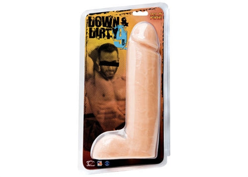 This Down and Dirty cock is 9 insertable inches with 2.4 inch girth. The right cock right now. Use it abuse it lose it or wash it ride it and reuse it. Sturdy waterproof phallic cock with flat base. When you are feeling extra dirty grab a bigger dong and get down.